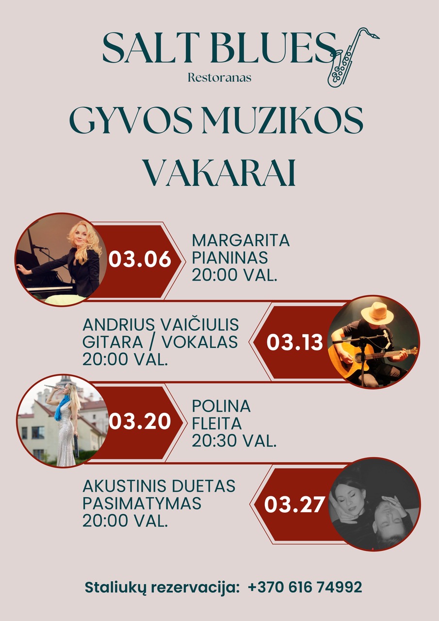 Gyvos muzikos akordai – nuo subtilaus pianino iki šiltų gitaros ir saksofono tonų – kuria nepakartojamą atmosferą. Vokalistų pasirodymai, degustaciniai bei edukaciniai renginiai praturtina vakarus ir palieka įsimintinus įspūdžius, kai tik jie vyksta. Skani vakarienė, maloni kompanija ir jauki aplinka susilieja į harmoniją, kuri kiekvieną apsilankymą Druskininkuose gali paversti ypatinga patirtimi.